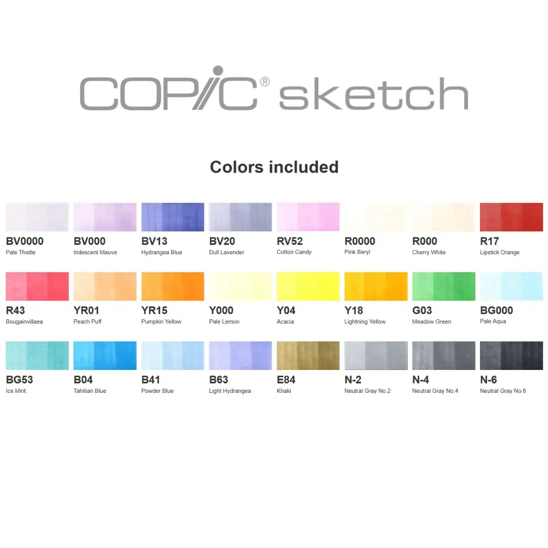 The included pale colors, a unique feature of Copic, will allow for gradation and blending techniques with professional results.